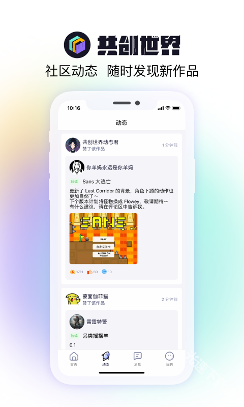 共創世界是個相當出色的編程交流學習平臺。它專門面向游戲與動畫創作者,用戶能在干凈清新的論壇里暢快交流、分享創作心得與技巧。不管是編程新手還是大神,都能在這里暢所欲言——無論是求助編程時碰到的各類問題,還是分享制作過程中的靈感,都會得到其他小伙伴的回應。而且,平臺還吸引了不少獨立游戲開發者入駐,用戶可以通過它催更、吐槽。感興趣的小伙伴趕緊來體驗吧!